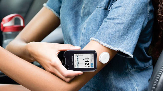 A continuous glucose monitor consists of three parts: a small electrode placed under the skin, a transmitter sending readings at regular intervals (ranging from every 5 to 15 min), and a separate receiver. Currently approved CGMs use an enzymatic technology which reacts with glucose molecules in the interstitial fluid generating an electric current. This electric current (proportional to the glucose concentration) is then relayed from a transmitter attached to the sensor out to a reader which displays the data to the patient.