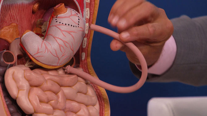 Bariatric surgery (or weight loss surgery) includes a variety of procedures performed on people who are obese. Long term weight loss through standard of care procedures (Roux en-Y bypass, sleeve gastrectomy, and biliopancreatic diversion with duodenal switch) is largely achieved by altering gut hormone levels that are responsible for hunger and satiety, leading to a new hormonal weight set point.